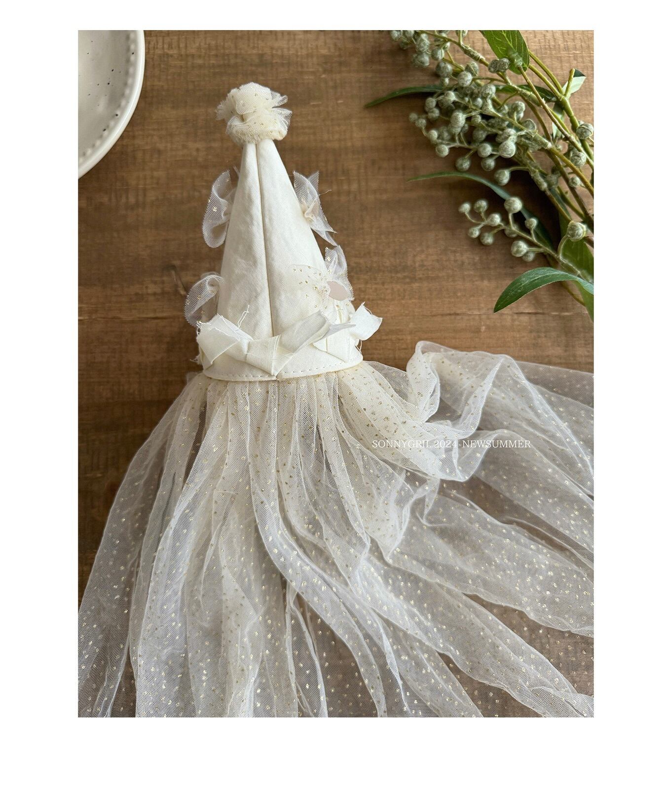 まるでドレスのようなデザインのバースデーハット。