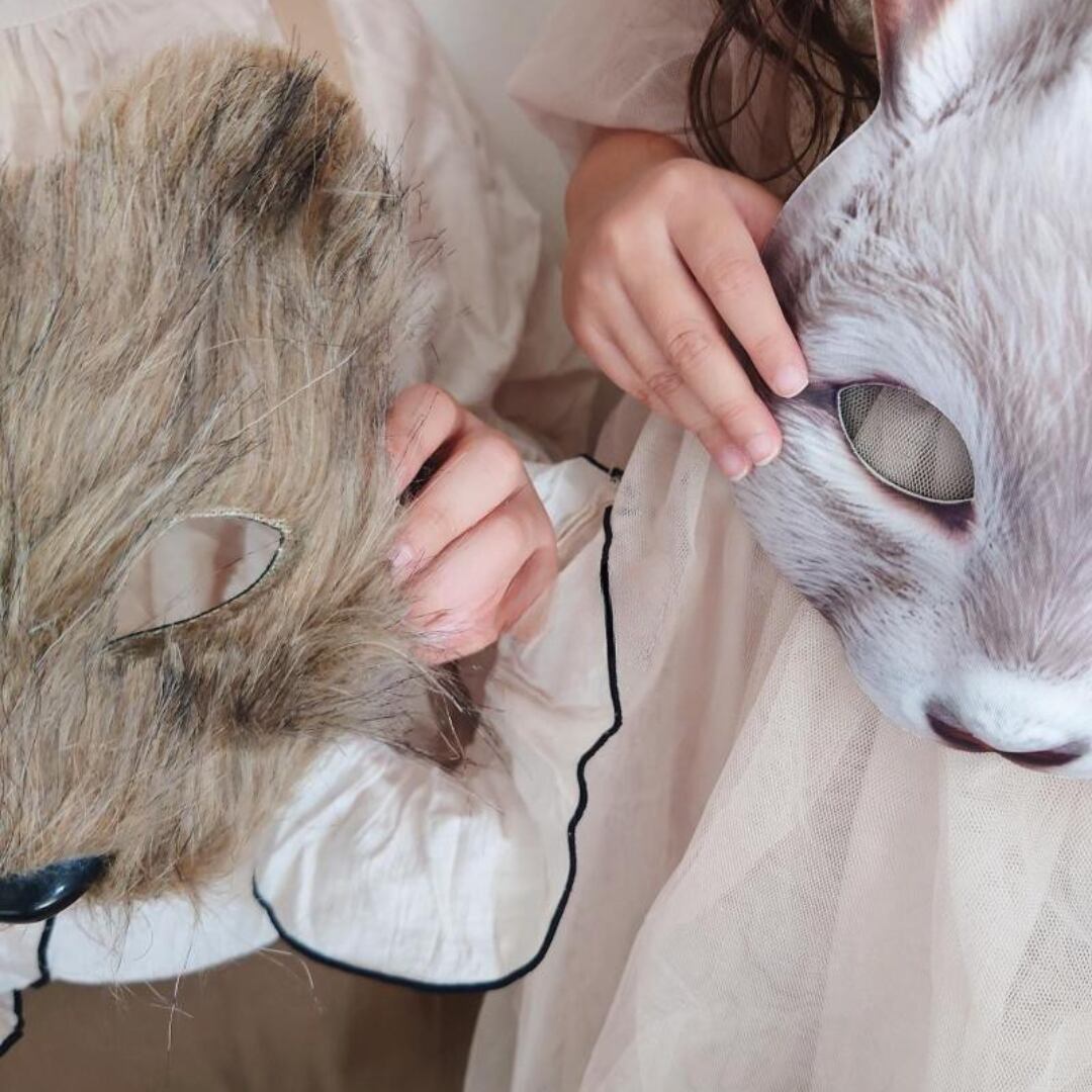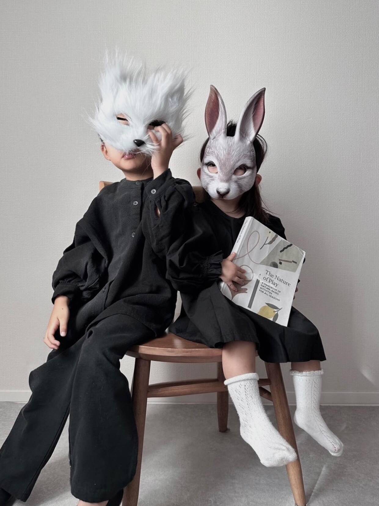 森の仲間になれる、くまとうさぎのお面です。
