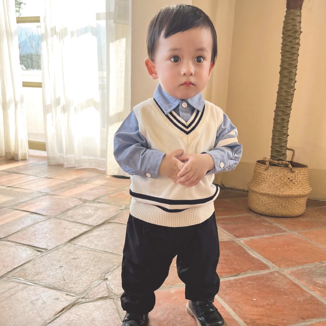 胸元のラインがポイントになった、上品でおしゃれなニットベスト。