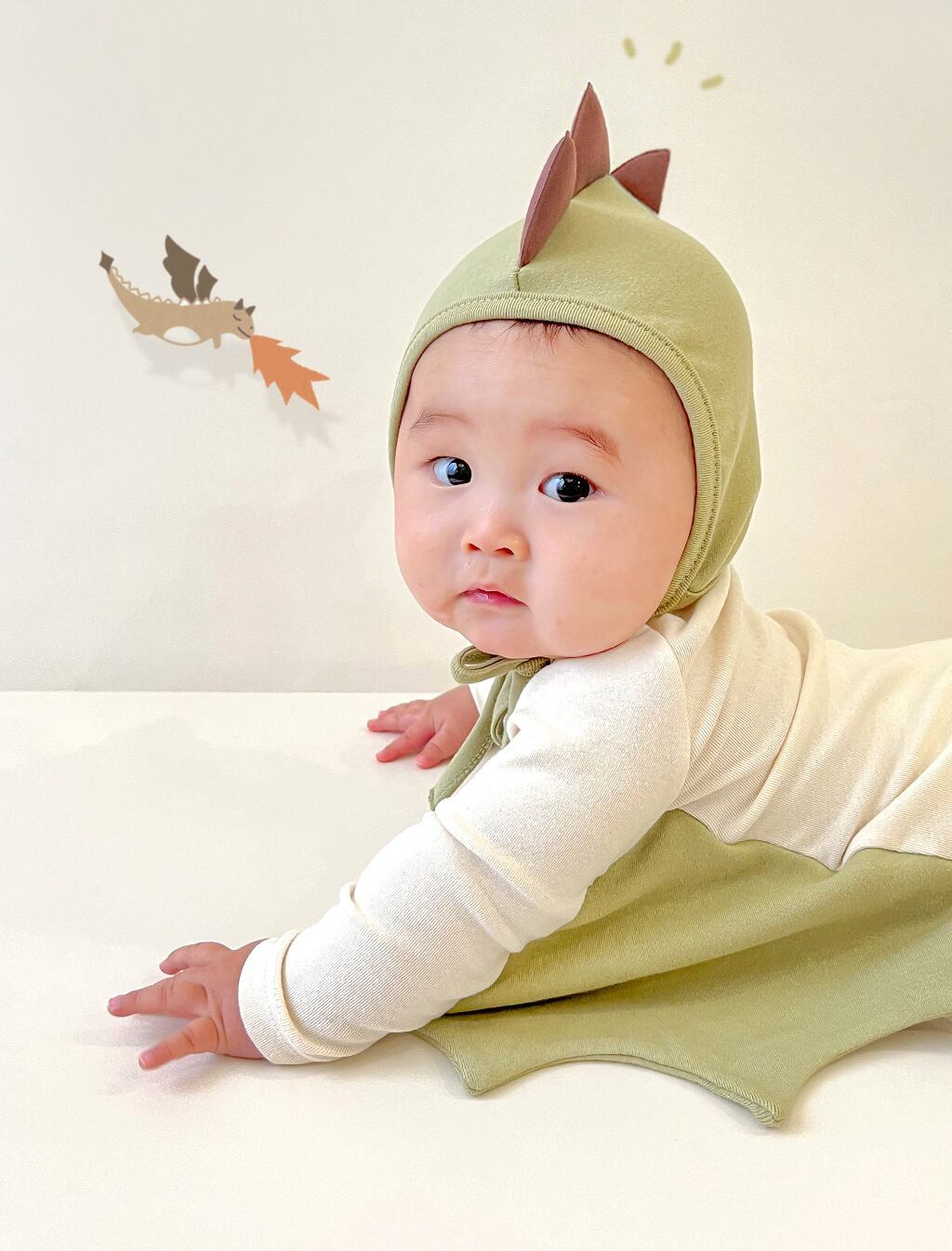 ハロウィンやイベントにぴったりのベビー用恐竜コスチューム。