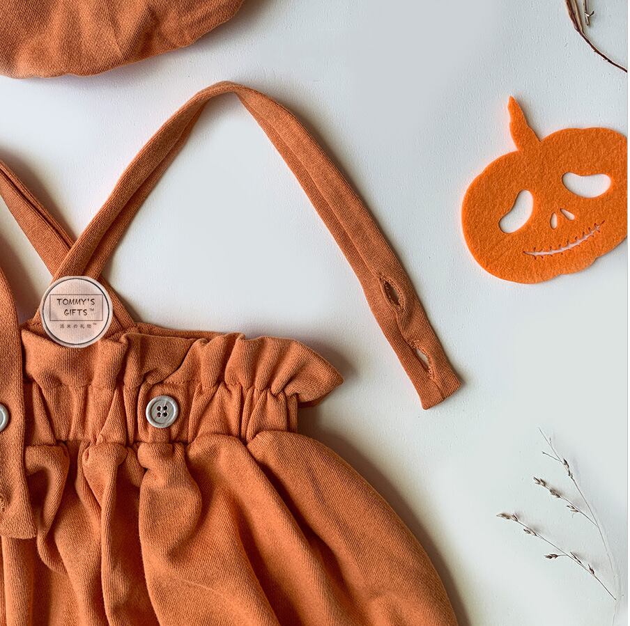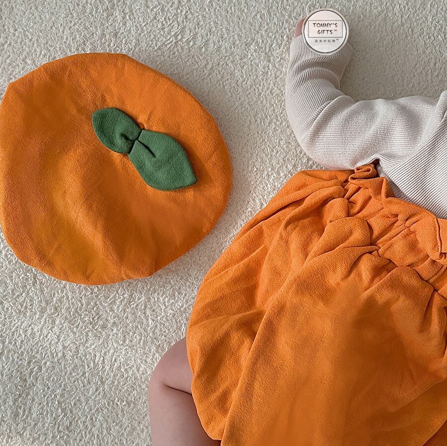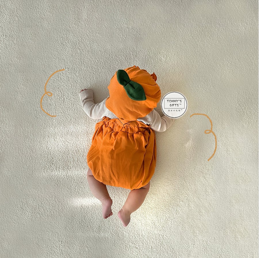 赤ちゃんが小さなかぼちゃに大変身できる、サロペットタイプのハロウィンコスチュームです。
