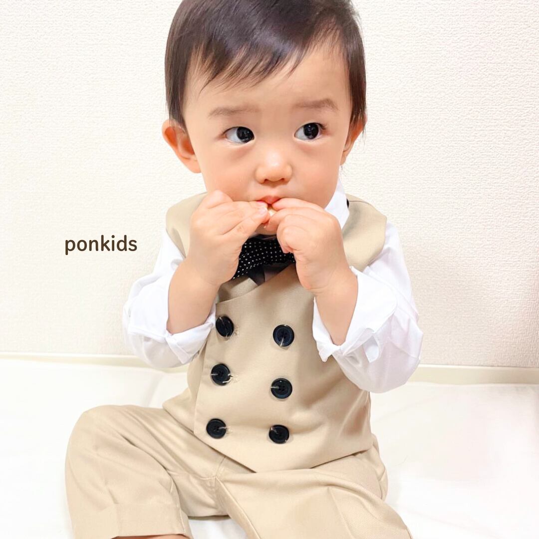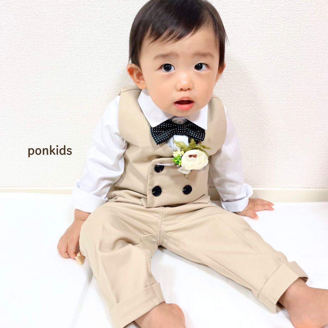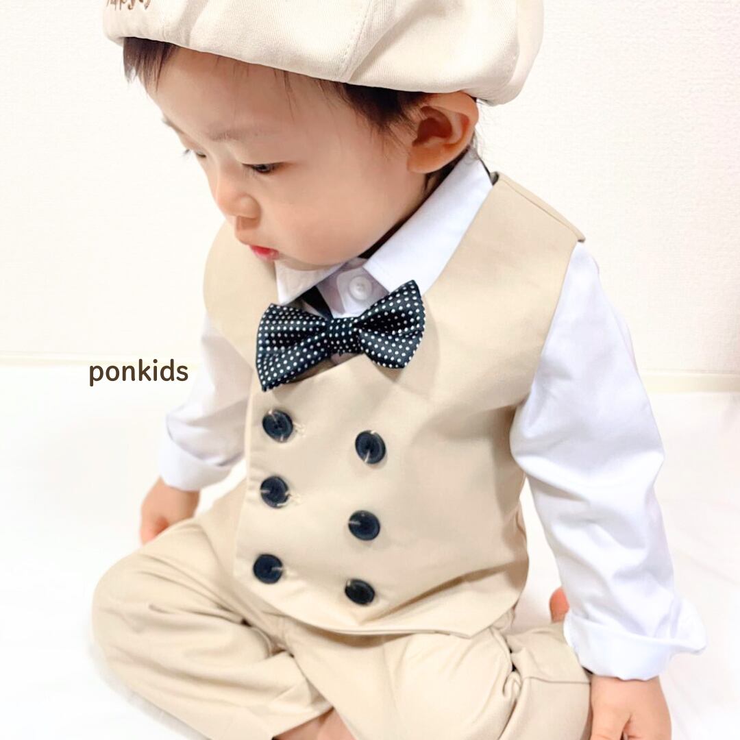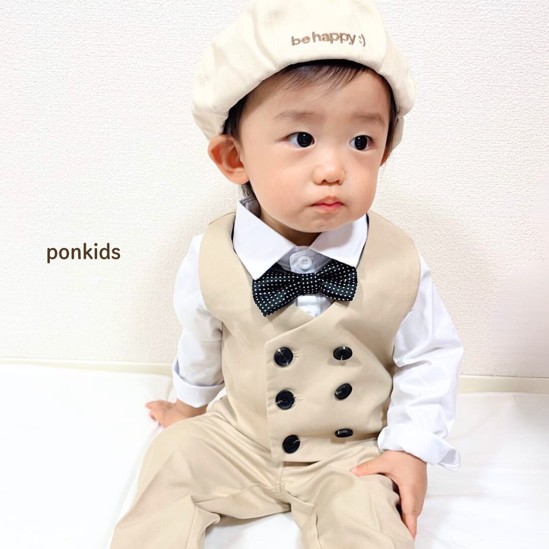 ベストとパンツにシャツ&蝶ネクタイとコサージュのおまけが付いた5点セットで、