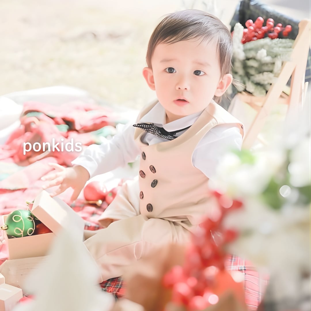 蝶ネクタイ、シャツ、ベスト、コサージュ、パンツ
