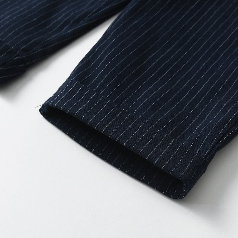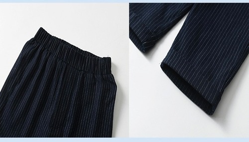 落ち着いたネイビーに細かなストライプが映える、上品なフォーマルセット。