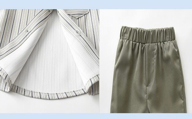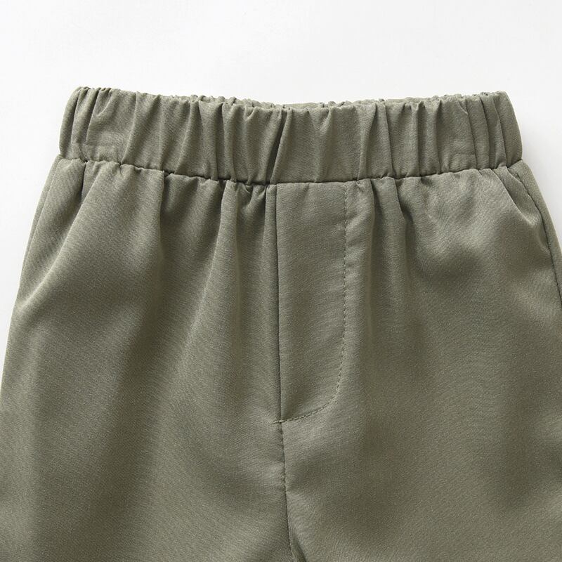 深みのあるオリーブパンツを合わせたフォーマルセット。
