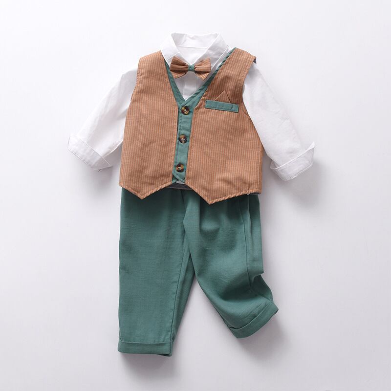 シャツ・ベスト・パンツの3点セットで、コーディネートも簡単。