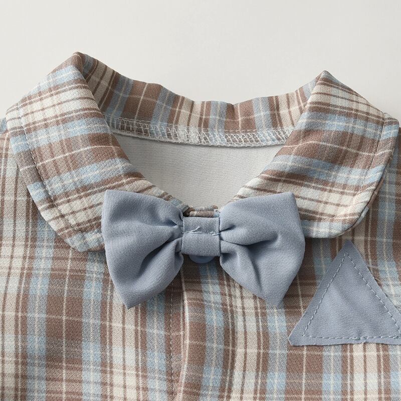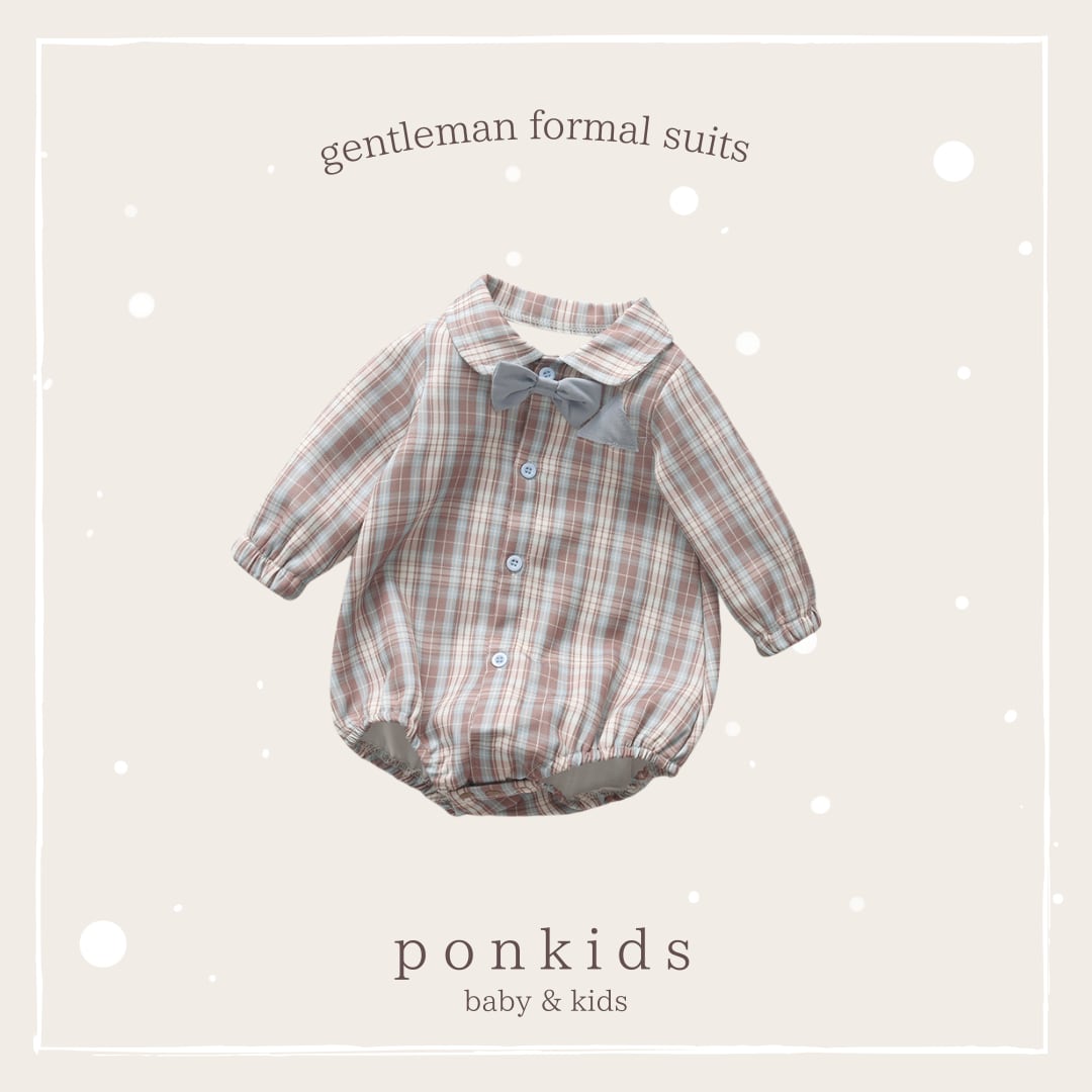 上品なチェック柄と蝶ネクタイがポイントの、フォーマルロンパースです。