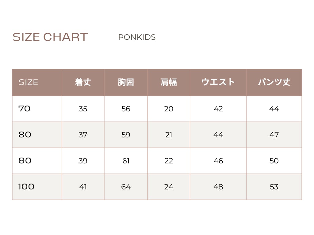 サイズ詳細表にてご確認ください。
