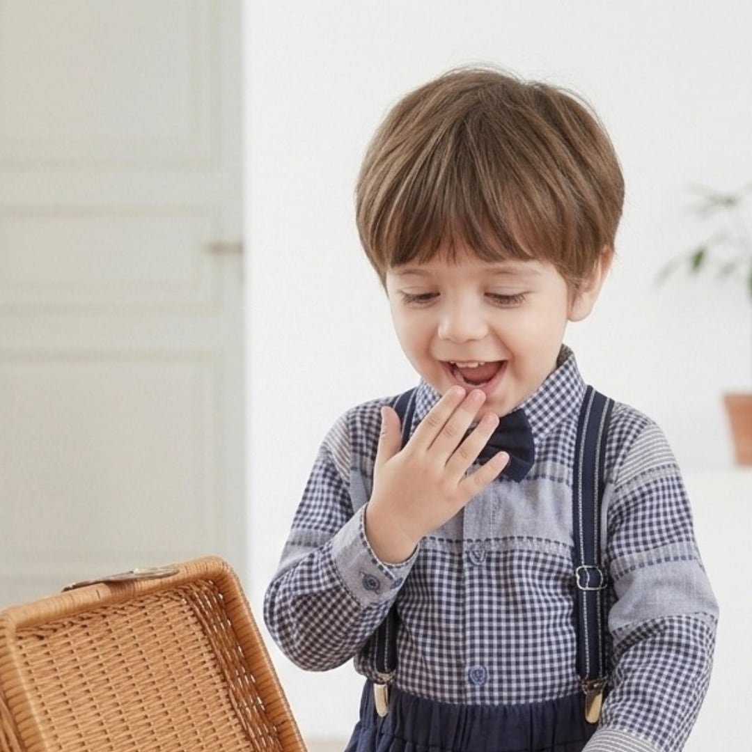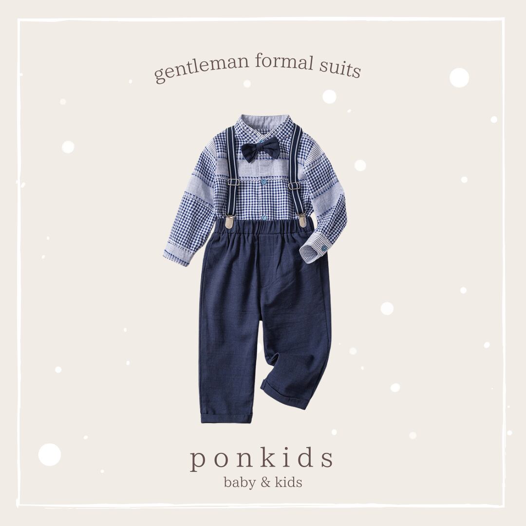 蝶ネクタイ付きシャツ、パンツ、サスペンダー