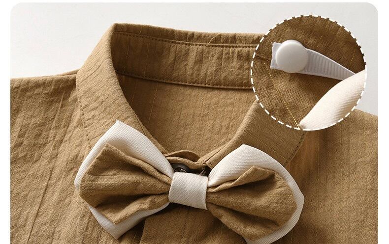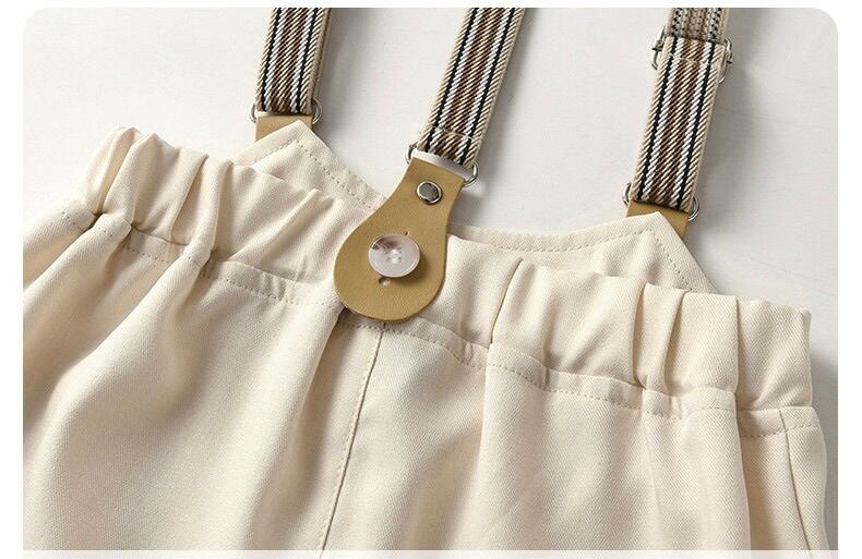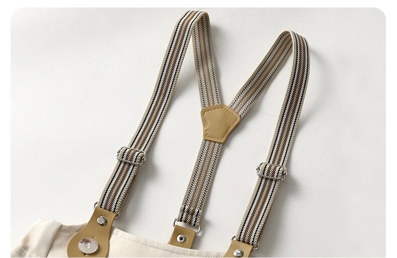 蝶ネクタイ付きシャツ、パンツ、サスペンダー