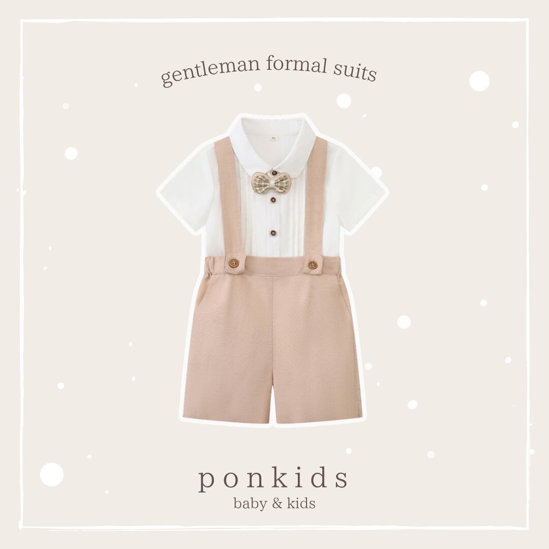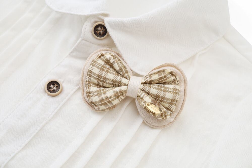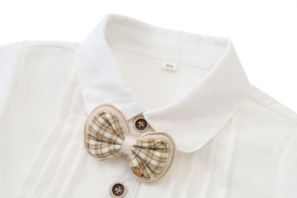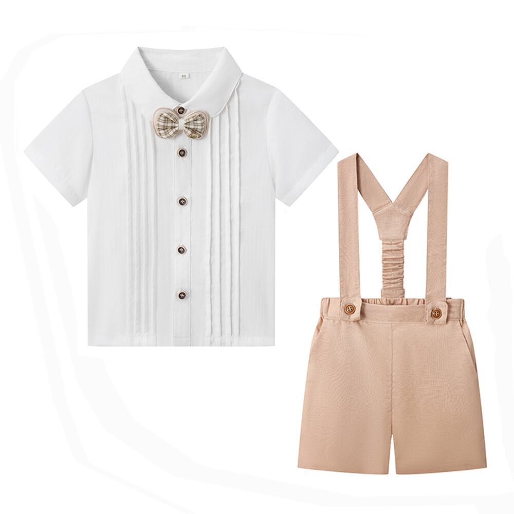 蝶ネクタイ付きシャツ、パンツ、サスペンダー