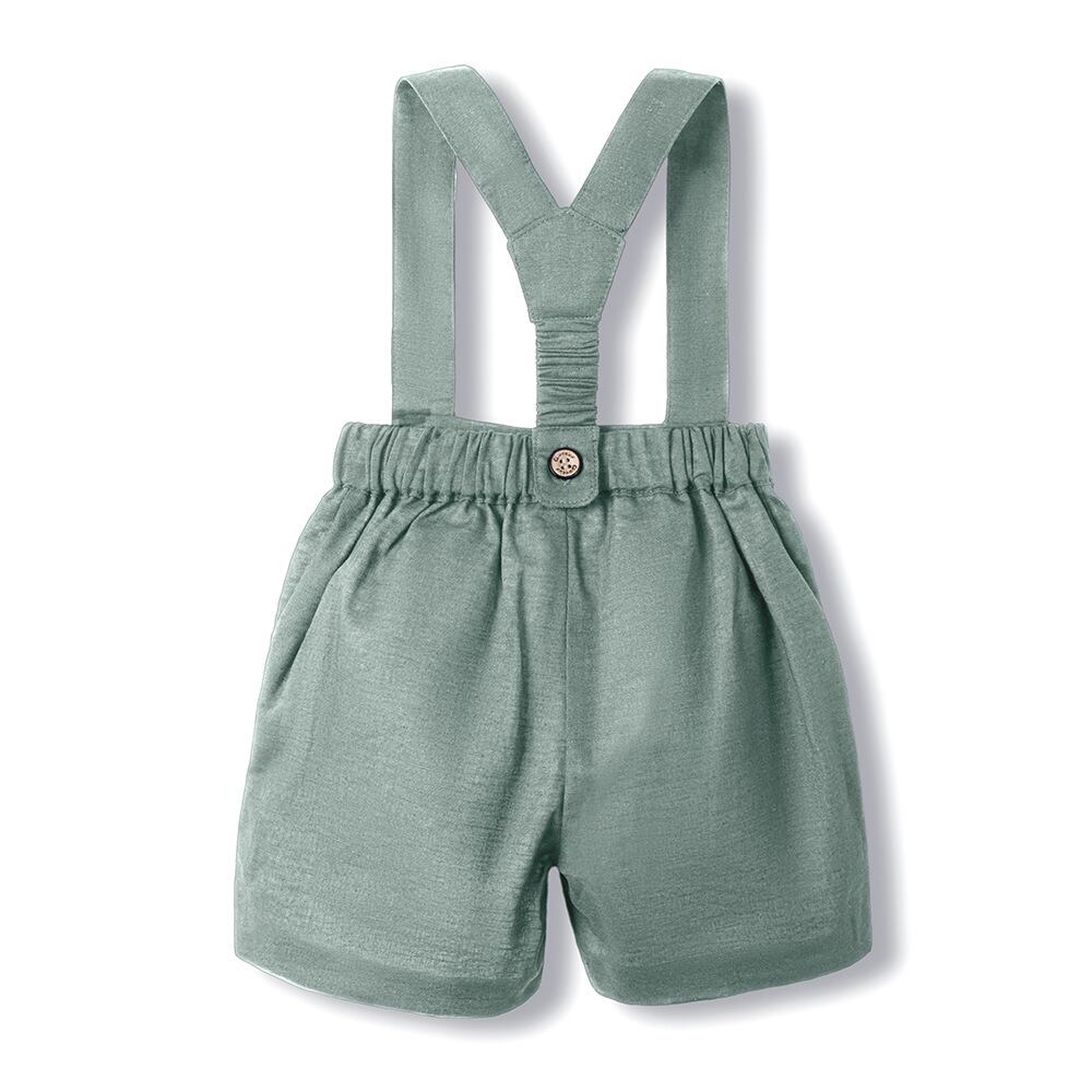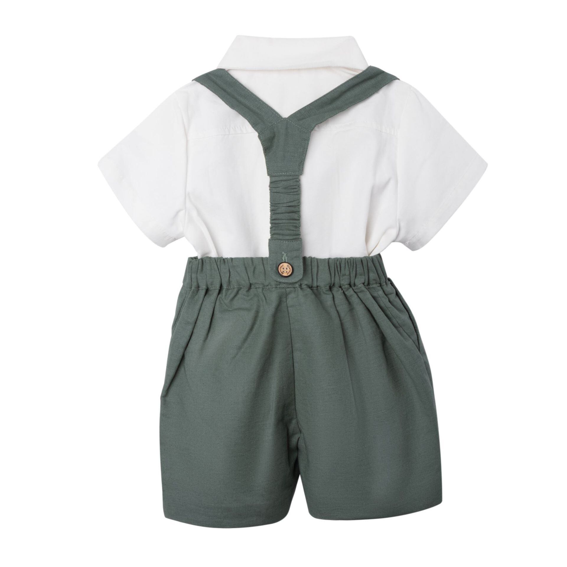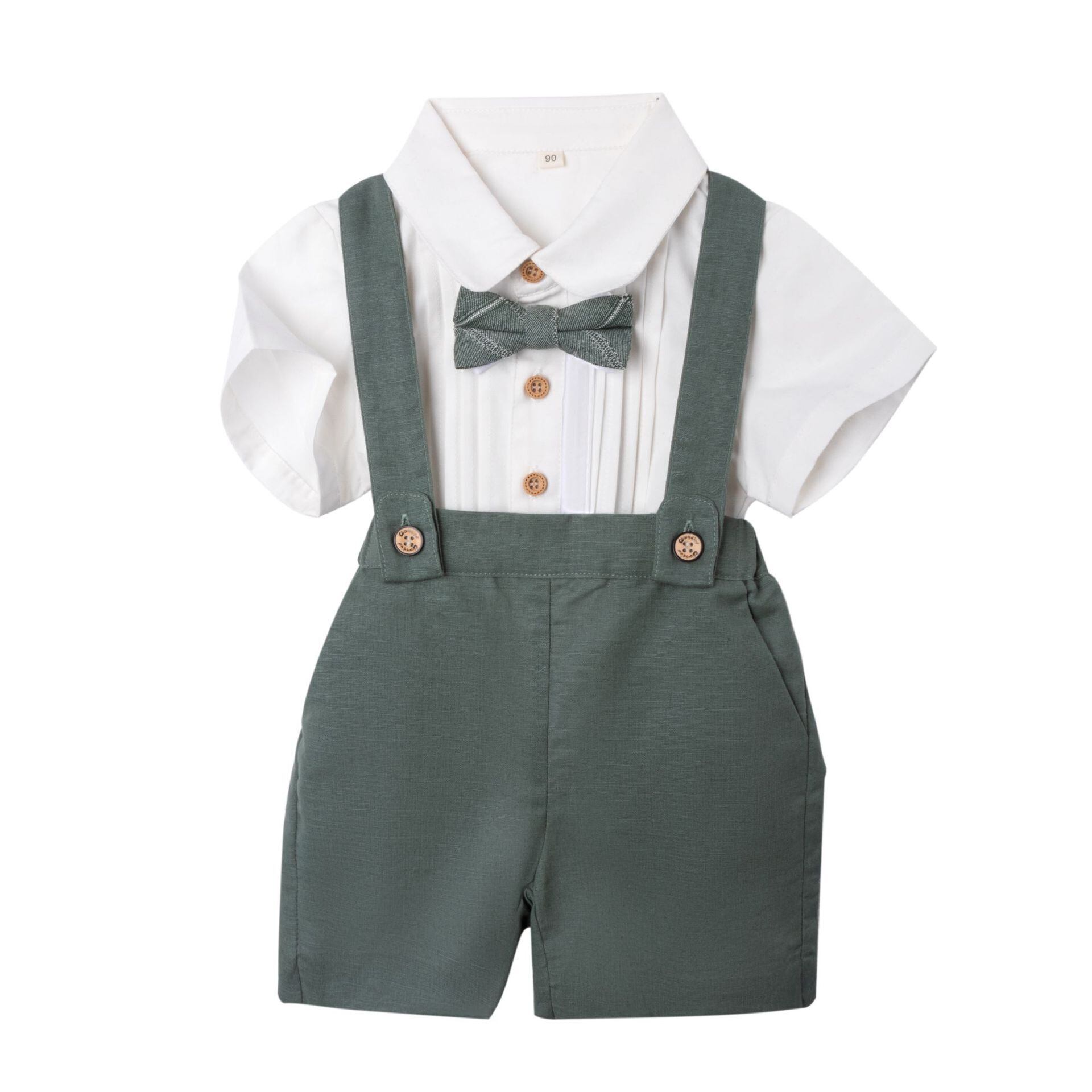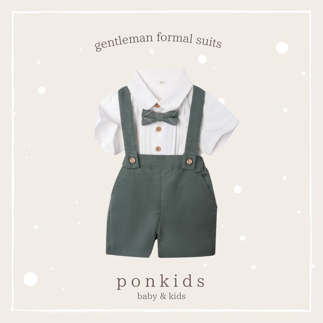 蝶ネクタイ付きシャツ、サスペンダー付きパンツ