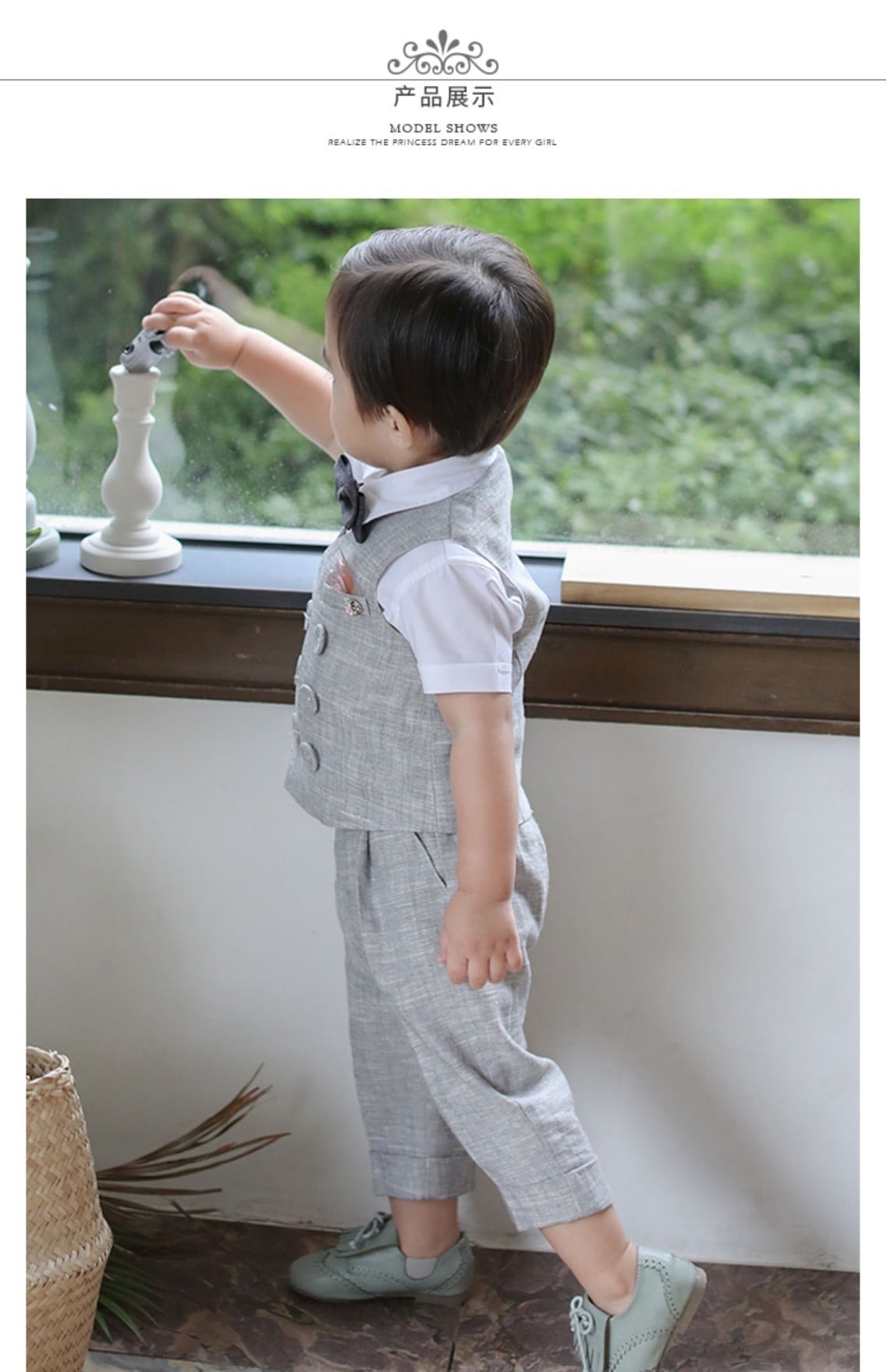 ジャケット、ベスト、パンツ、シャツ、蝶ネクタイの