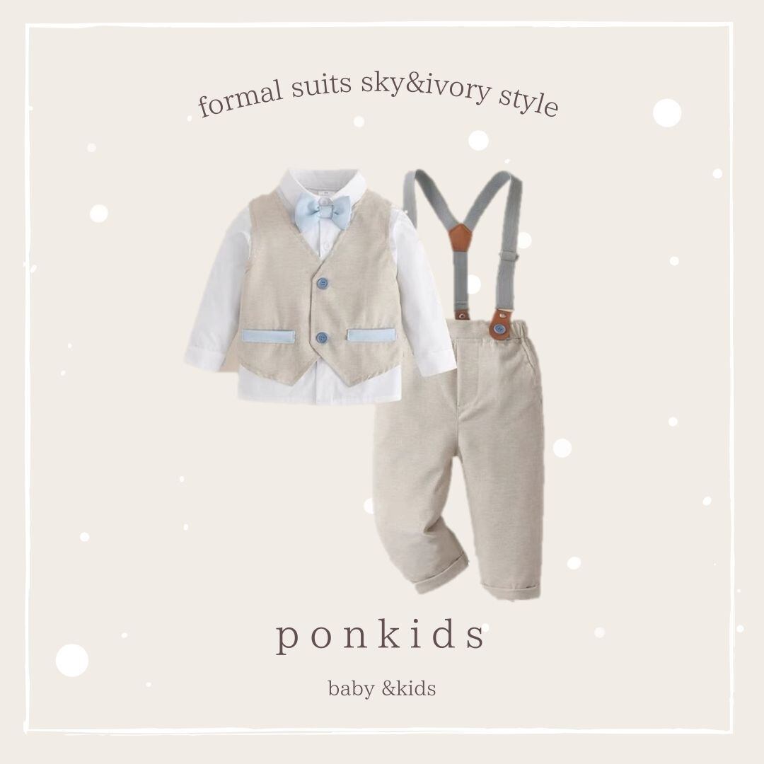 エレガントで可愛らしいお子様用のアイボリーフォーマルスーツです。